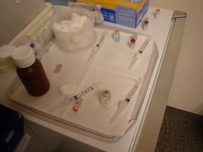 We made our way down to Kaiser in Santa Clara for our SECOND attempt at seeing the travel nurse. After waiting in the injection clinic and having the great opportunity of observing some of Kaiser's best clients we were taken next door to the office of Sandy the Travel Nurse.